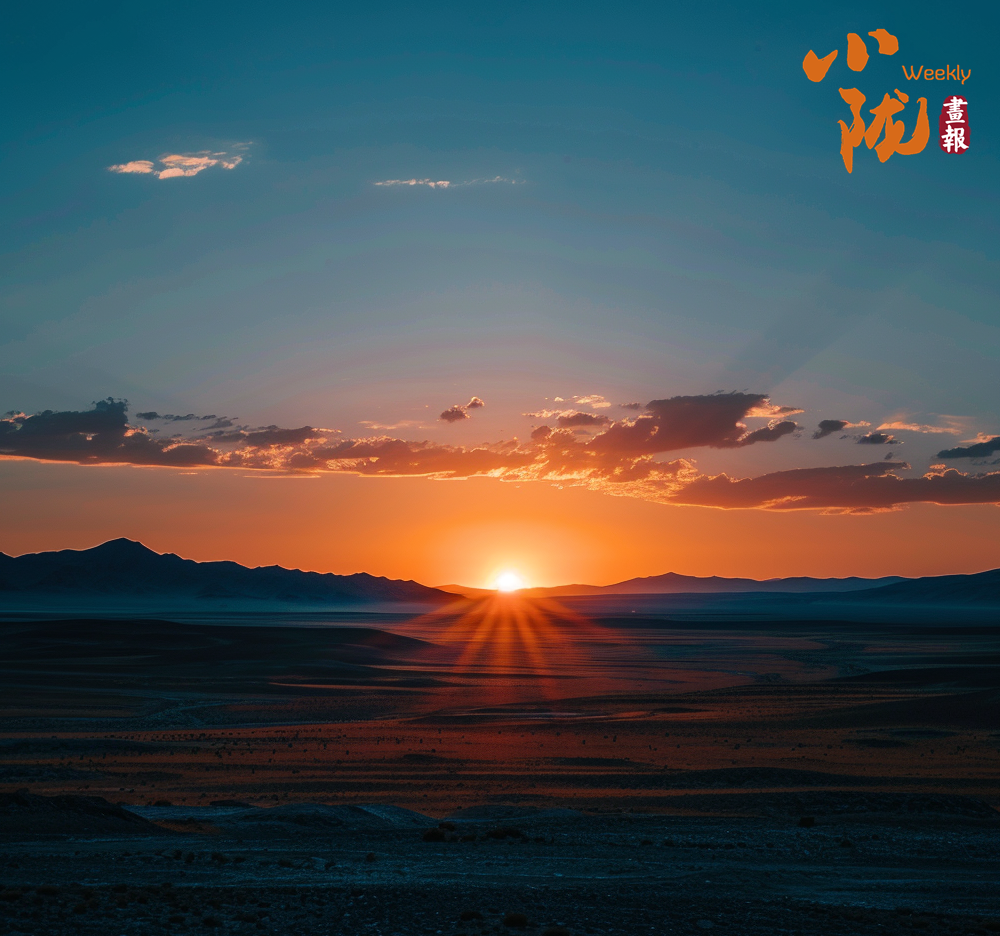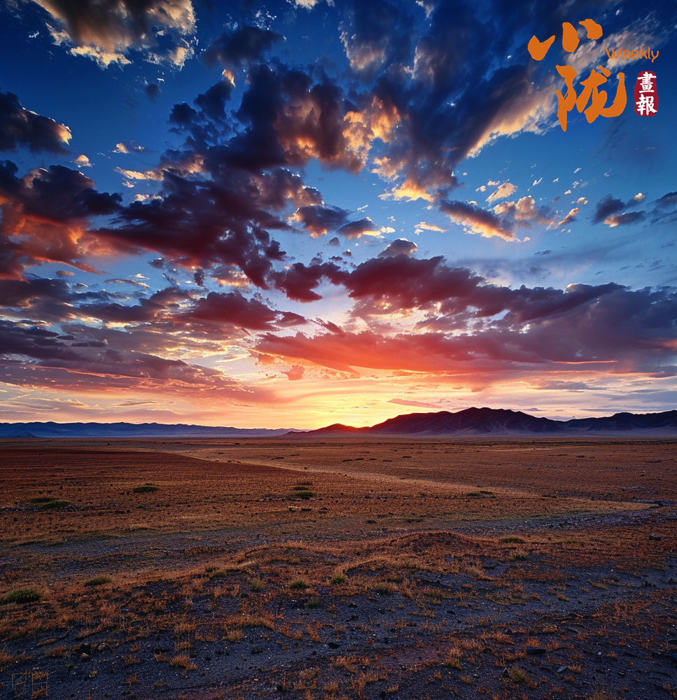 夕陽西下,余暉與戈壁融為一體,紅橙色的光芒將整個地平線染成了一片暖色。在這個時刻,戈壁灘的草木們也似乎感受到了晚霞的美麗,它們輕輕搖擺,似乎在與夕陽共舞。