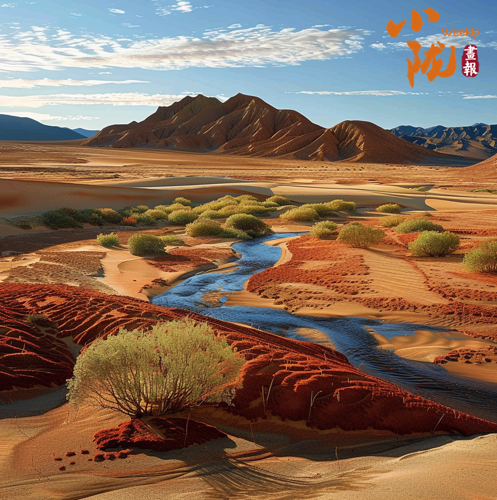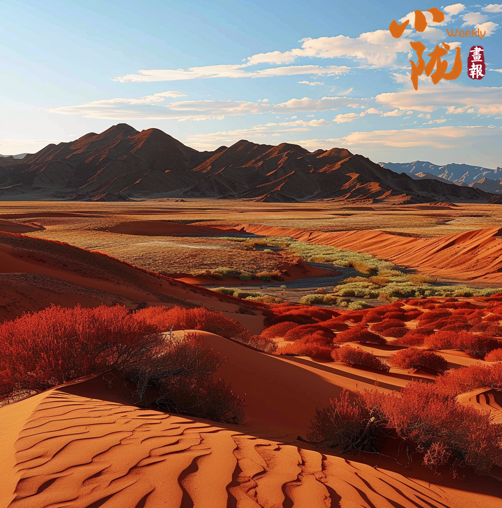 一叢叢紅柳宛如流動的彩云,在這蒼茫的戈壁灘上盡情綻放。這種看似平凡卻又充滿生命力的植物,與藍天白云相映,與沙丘中一蓬蓬的綠色為伍,為這粗狂的戈壁帶來了無限生機。