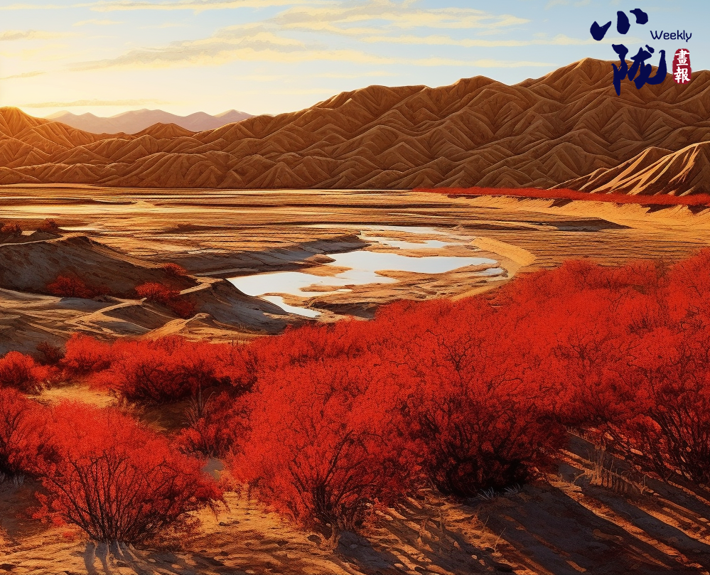 這里氣候干燥,降水稀少,高大的植物難以生存。只有紅柳深扎根須,迎著風沙,頑強生長。遠遠望去,密集的紅柳連成一片,把戈壁染成了紅色。