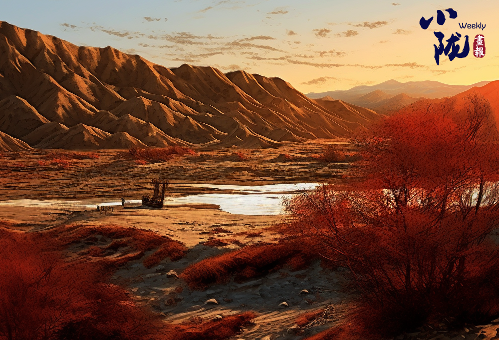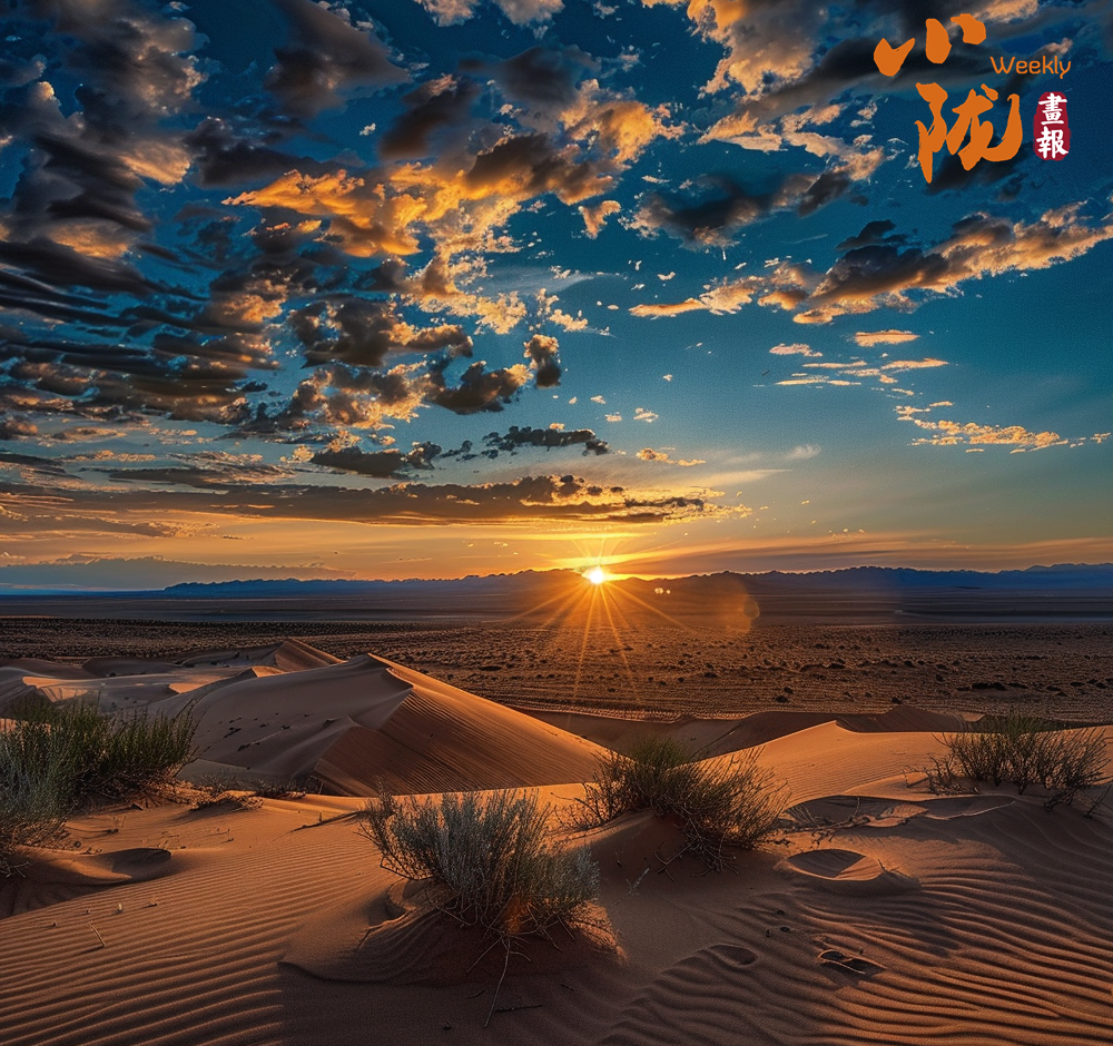黃昏時分,金色的夕陽醉倒在一望無垠的黃沙中,落日的光輝給綿延起伏的沙丘,又鍍上一層金色,更顯雄渾壯闊,旅人在沙海中獨行,自由又浪漫。