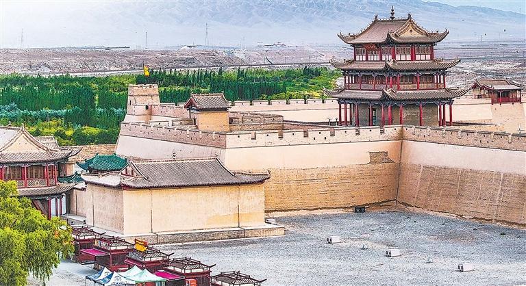 如今,陽(yáng)關(guān)、玉門(mén)關(guān)已和莫高窟、月牙泉一樣,為中外游客所向往。在陽(yáng)關(guān),不同膚色的游客齊聚王維塑像前,聽(tīng)導(dǎo)游用中文、英語(yǔ)、日語(yǔ)講述“西出陽(yáng)關(guān)無(wú)故人”。在玉門(mén)關(guān),游客穿上漢服,打卡留念。