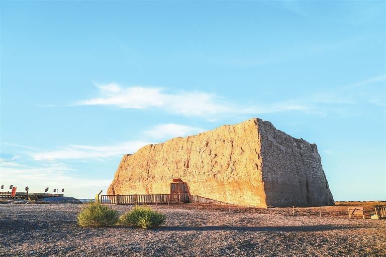 歲月洗禮,如今的陽(yáng)關(guān)已沒(méi)了蹤跡,只剩下一片叫作“古董灘”的洼地,和遠(yuǎn)處的陽(yáng)關(guān)烽燧。戈壁深處的玉門(mén)關(guān),被稱為“小方盤(pán)城”,走進(jìn)城中仍能感受到雄關(guān)莊嚴(yán)。往西5公里處,還能見(jiàn)到一段漢長(zhǎng)城頑強(qiáng)挺立。