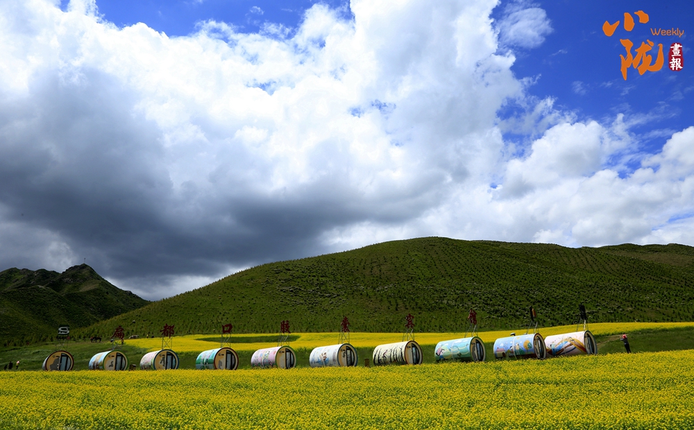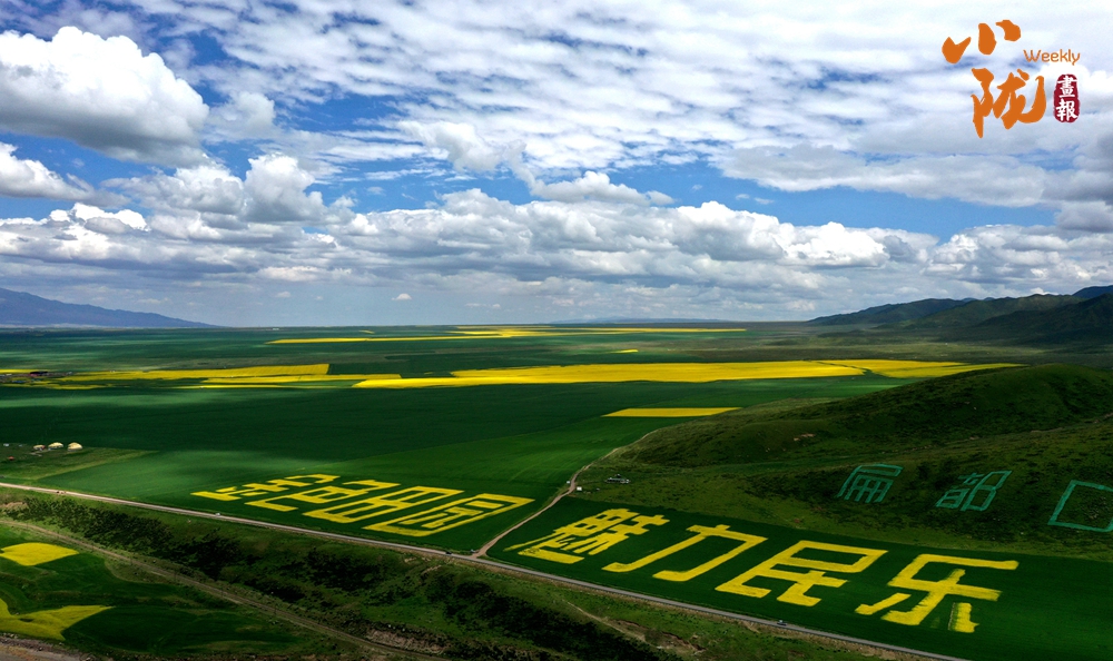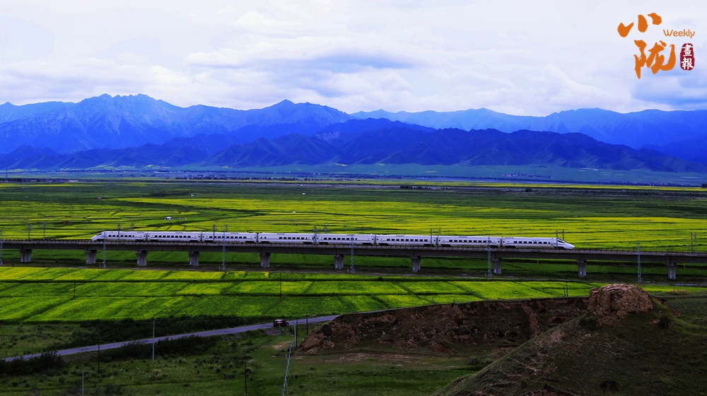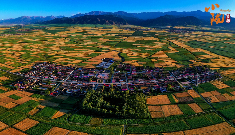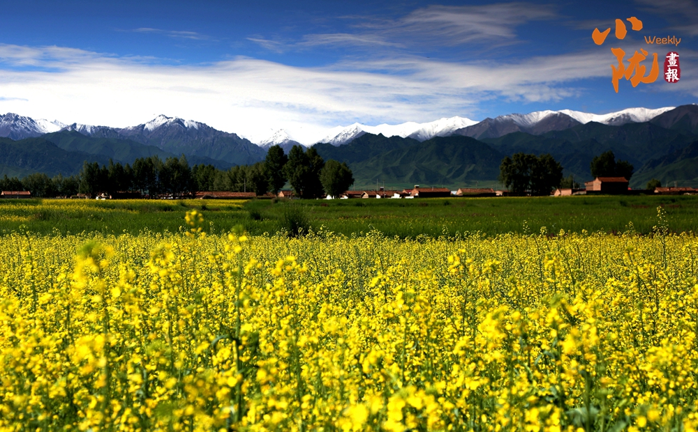 在藍天白云和祁連雪峰的映襯下,那盛開的油菜花、點綴在花海中的村莊人家,勾勒出一幅優(yōu)美的田園風光畫卷。