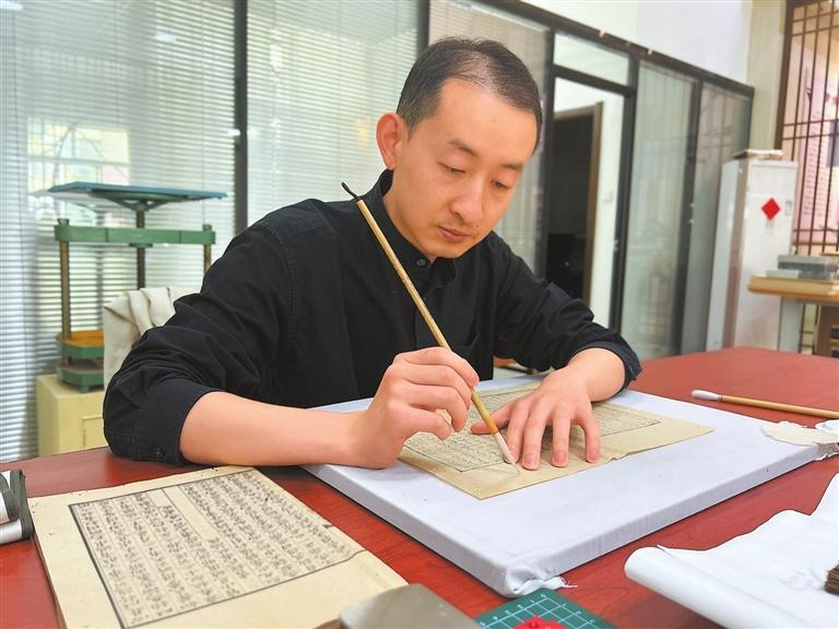 進入保護中心一年,“90后”修復師王學斌覺得,古籍修復工作賦予古籍新生,能從事這份工作充滿榮耀。