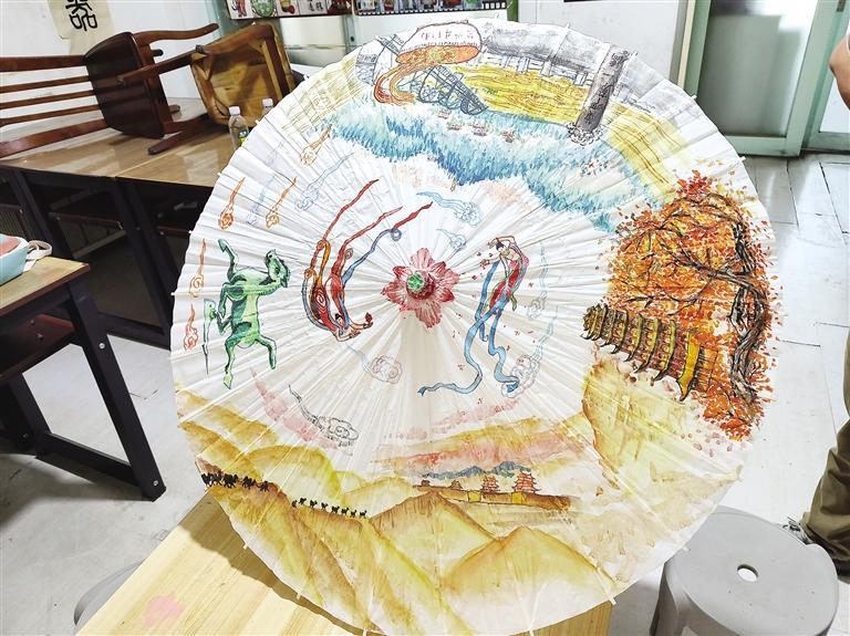 原標(biāo)題:少年執(zhí)筆繪巧思在油紙傘上講述絲路故事
