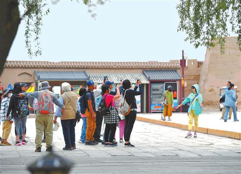 游客在嘉峪關關城拍照留念。新甘肅·甘肅日報記者 馬伊星