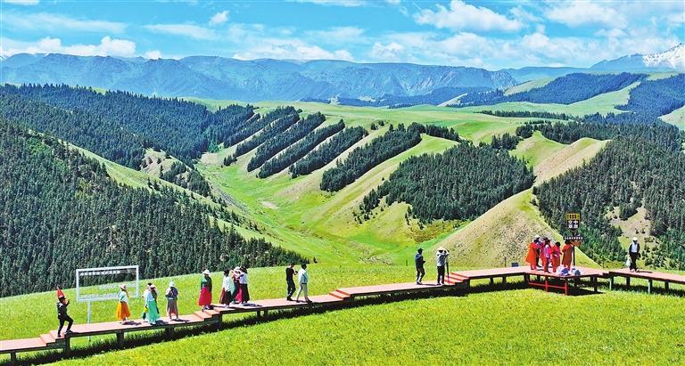 游客在肅南縣康樂草原領略祁連風光。 新甘肅·甘肅日報通訊員 王將