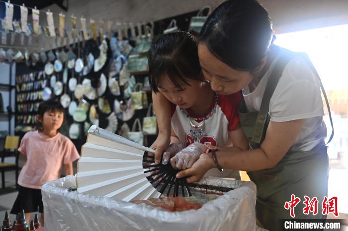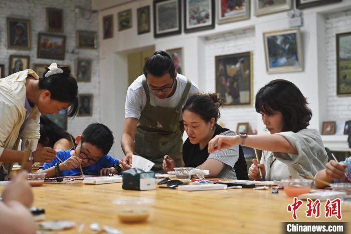 8月20日,甘肅敦煌莫高里工匠村內(nèi),學(xué)員體驗敦煌文化研學(xué)課程。工匠村開設(shè)了泥板畫、彩繪、雕塑制作、剪紙、農(nóng)耕體驗等課程,現(xiàn)已發(fā)展成為一個集敦煌文化講堂、壁畫書法研習(xí)、美術(shù)設(shè)計、彩塑制作教學(xué)、篆刻藝術(shù)、傳統(tǒng)釀酒體驗、農(nóng)業(yè)產(chǎn)業(yè)發(fā)展等于一體的多功能實訓(xùn)基地。中新社記者 李亞龍 攝