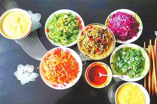 百人百心病,百人百口味?,F(xiàn)在的人吃馓飯,對菜品的要求越來越高了,除了酸菜,人們大多還會調(diào)一些涼菜,或炒一些菜,蘿卜的,肉丁的,山野菜的,虎皮辣子的,滿滿地?cái)[上一桌子,如錦上添花,令人食欲大增。
