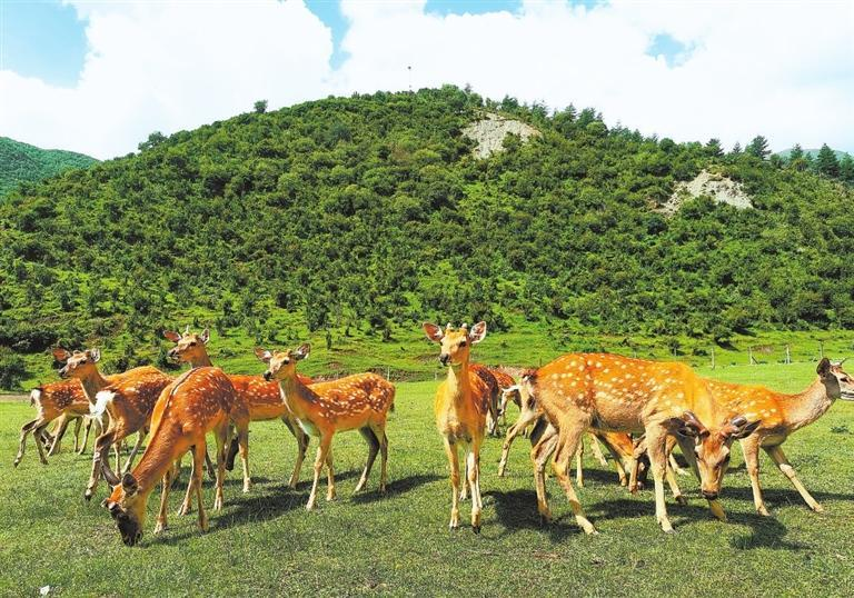 鹿場南環(huán)大山、北繞黃長拉山,是個天然牧場。慢步走近活潑可愛的梅花鹿,不禁想起“鹿乃仙獸,自能樂性,鹿之一身皆益人”。這是李時珍在《本草綱目》中對梅花鹿的評價。一直以來,梅花鹿在民間百姓心中都是長壽幸福的象征。