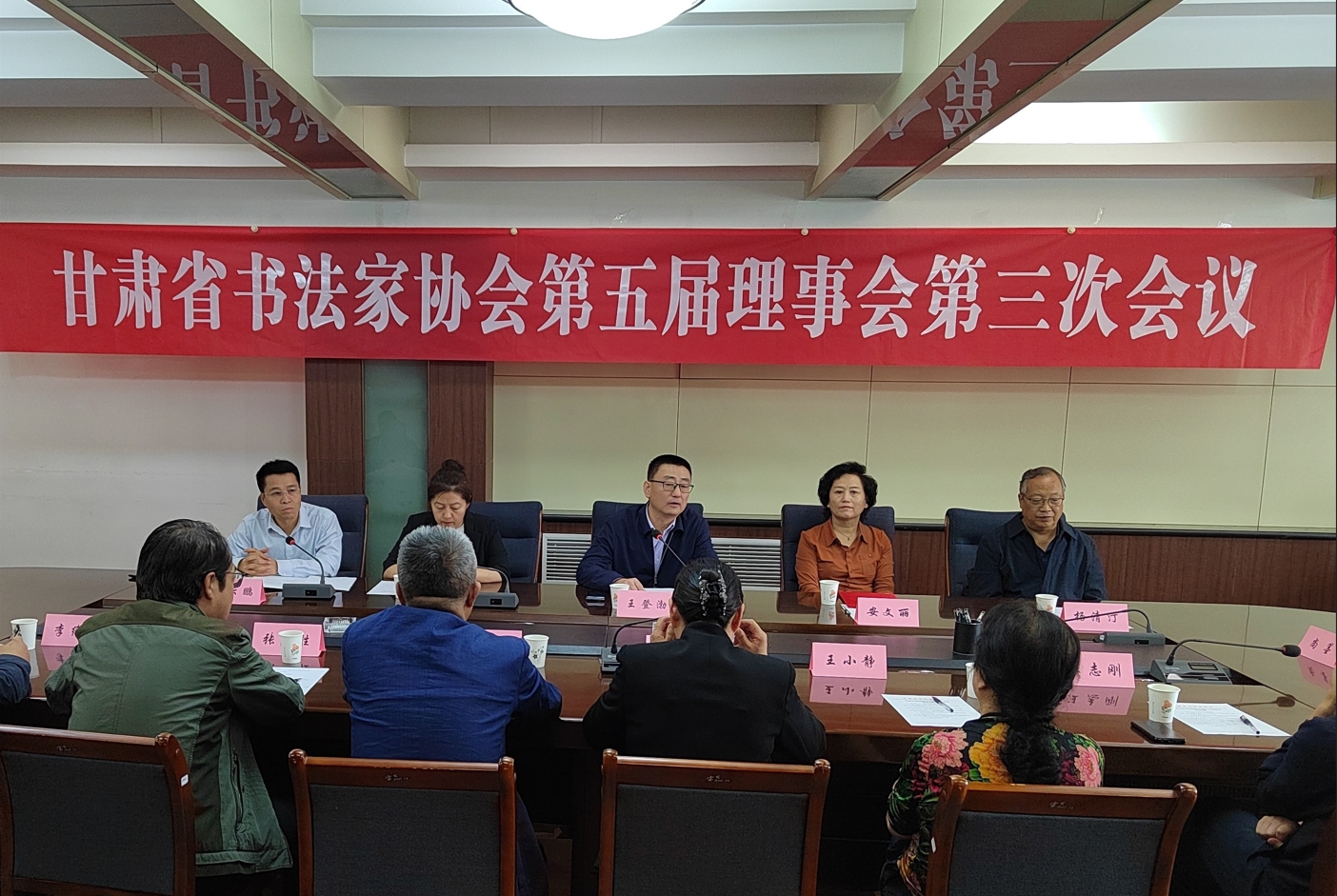 2024年9月13日下午,甘肅省書法家協(xié)會第五屆理事會第三次會議在蘭州召開。省文聯(lián)黨組書記、主席王登渤出席會議并講話,省文聯(lián)人事處處長楊東英、省書協(xié)五屆理事會理事參會。會議由省書協(xié)常務副主席劉云鵬主持。