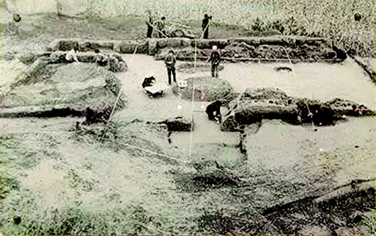 秦安大地灣遺址是1958年發(fā)現(xiàn)的,當(dāng)時正值全國文物大普查,隨即被列為省級文物保護(hù)單位。1978年開始發(fā)掘,總面積110萬平方米,現(xiàn)揭露面積13700平方米,出土房址238座、灰坑357個,墓葬79座、窯38座、灶臺106座,各種骨、石、蚌、陶器、裝飾器和生活器物共計8034件。特別是房屋建筑遺址,不僅規(guī)模宏偉,而且形制復(fù)雜。在發(fā)掘中就被公布為全國重點文物保護(hù)單位。
