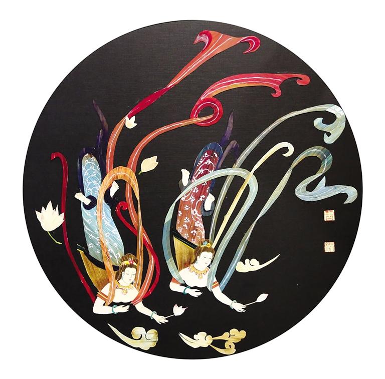 周玉梅曾經(jīng)說過,“如果我的生命里沒有了剪紙、繪畫這些東西,我的靈魂也將變得枯萎。”憑借著對繪畫的熱愛,她的麥稈畫作品幾乎達到了爐火純青惟妙惟肖的程度。在展覽現(xiàn)場,她的《親情系列之骨肉情深》麥稈作品呈現(xiàn)的是兩只老虎,幼虎憨態(tài)可掬,雌虎一改威嚴姿態(tài),舐犢情深的“老母親”形象活靈活現(xiàn)。在她親情系列的畫作中,無論是羔羊、奔馬、老黃牛等動物皮毛部分皆用細如針尖的麥稈粘貼而成,一幅畫作成千上萬根麥稈不僅考驗著作者的功力,更考驗著作者的耐力。作為甘肅山丹人,畫敦煌飛天是每一個甘肅人的情懷。因此,她創(chuàng)作的《飛天》畫作中,飛天身著彩色飄帶在空中飄逸飛舞,而這正是周玉梅畢生追求的藝術境界。