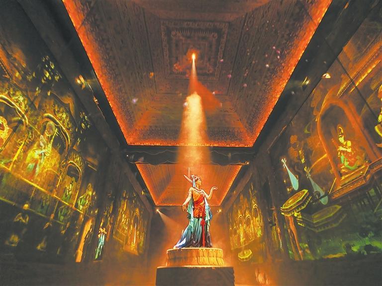 近年來,敦煌借助豐厚的旅游文化資源快速出圈,旅游項(xiàng)目供給不斷豐富,游客多樣化、高品質(zhì)的旅游需求不斷被滿足。其中《樂動(dòng)敦煌》作為全球首部洞窟式沉浸體驗(yàn)劇,自開演以來好評如潮。該劇在文化書寫、空間營造、科技賦能、審美引領(lǐng)、研學(xué)實(shí)訓(xùn)等方面逐步拓展旅游演藝新邊界。