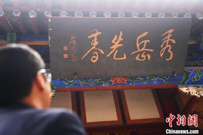 10月23日,甘肅省天水市秦安縣鳳山景區(qū),講解員介紹魯岱下人許行所題隸書“秀岳先春”的匾額。匾額文化是中華民族獨(dú)特的民俗文化,它把辭賦詩(shī)文、書法篆刻、建筑藝術(shù)融為一體。秦安作為歷史文化名城,其不少景區(qū)內(nèi)都存在歷史名人所題珍貴匾額,見證了歷史變遷。中新社記者 李亞龍 攝