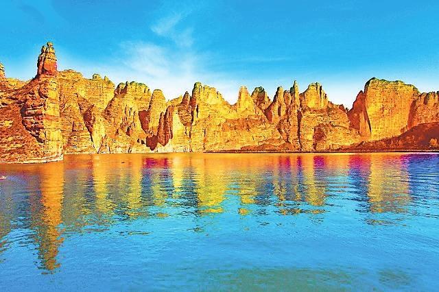 炳靈石林南鄰黃河,北倚大山,園內(nèi)千峰壁立,萬壑縱橫,數(shù)百條支溝曲折蜿蜒,它們與形態(tài)各異的石峰共同組成了奇異的石林世界,是一座氣勢磅礴的天然雕塑博物館。炳靈石林掩映著劉家峽水庫浩渺碧波,呼應(yīng)著炳靈寺古老石窟,兼盡大西北的雄渾和江南的柔美,透露著大自然的變化莫測,猶若仙境,令人神往。一座座,一峰峰,以物造形,隨意賦名,有的像玲瓏的寶塔,有的若群駝行進(jìn),有的若巨龍騰空,有的如奔騰的駿馬……形象生動,活靈活現(xiàn)。乘坐游船穿越炳靈峽,沿途可欣賞到兩岸峭壁聳立,石林倒映水中,形成“水上石林”的獨特景觀。