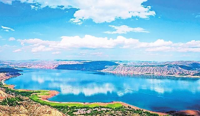 炳靈湖 雄偉的劉家峽大壩阻斷黃河,在永靖境內(nèi)聚成了一座高峽平湖。因這座湖毗鄰炳靈寺石窟和雄奇險秀的炳靈石林,故稱其為炳靈湖。整個湖水,在夏秋季呈綠色,就像一塊翡翠鑲嵌在群山之中,散發(fā)著耀眼的光芒,夏秋呈翡翠色,冬春呈藍(lán)色,由于水質(zhì)清澈,群山倒映水中,水天一色,加之湖面廣闊無垠,看上去平靜如海。但每當(dāng)劉家峽水庫泄洪的時候,磅礴的氣勢猶如蛟龍出水,翻江倒海,氣沖云天。