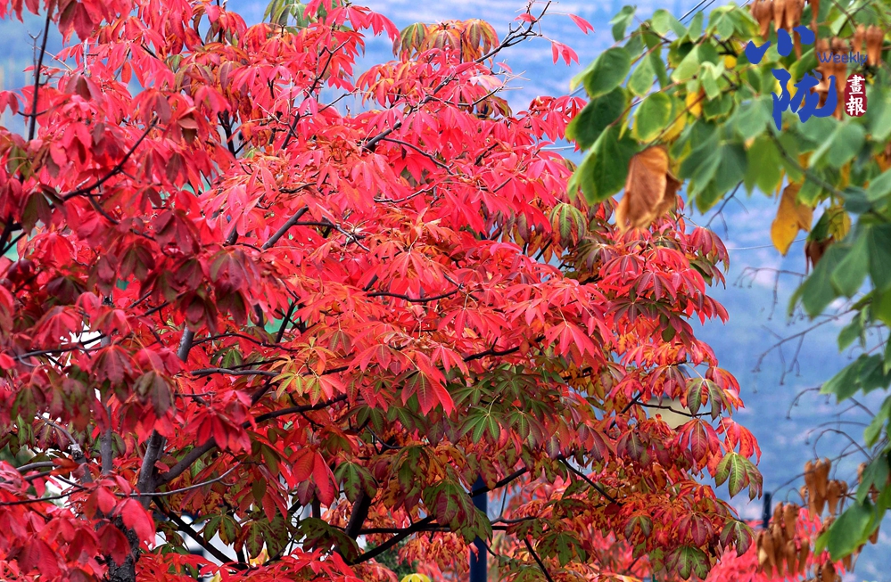 秋高氣爽,街道上,紅葉滿枝,熱情似火,在陽光下?lián)u曳生姿,給城市增添了無比生動的秋韻。