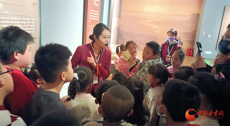 活動中,講解員帶著同學們走進甘肅簡牘博物館,將藏在簡牘中的漢代春節(jié)講給同學們聽。
