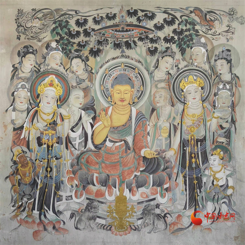 所謂“薄肉雕”就是壁畫與雕塑結(jié)合,在佛像的裝飾部位和衣衫部位都是壁畫描繪,在佛像裸露的身體部位則用雕塑來塑造立體感。