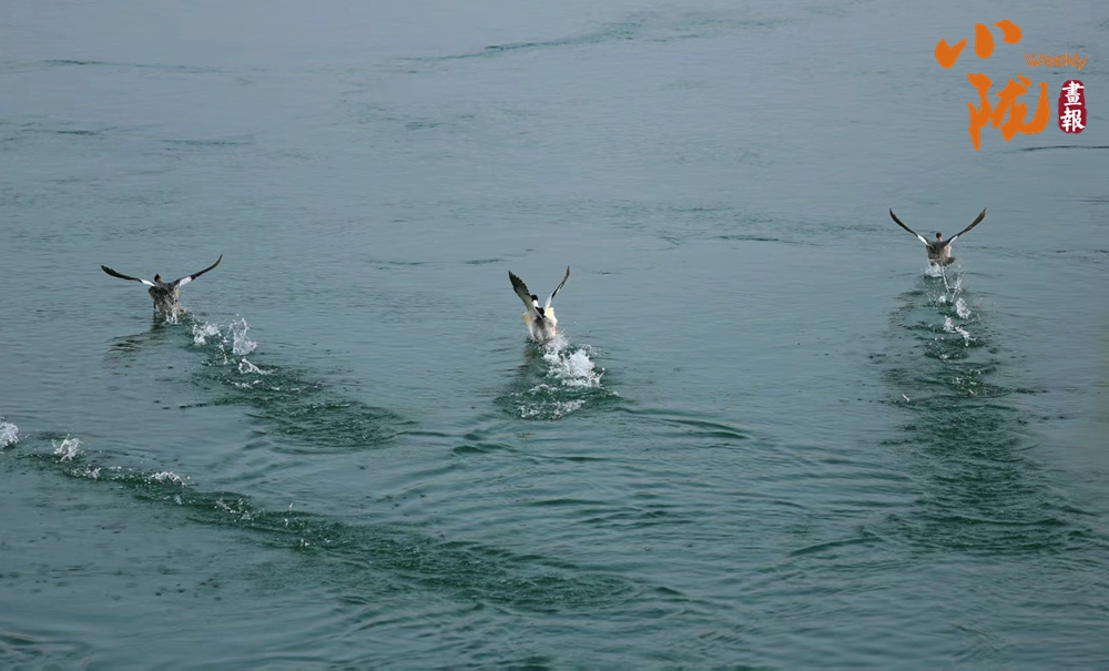 春雪飄灑在黃河兩岸長(zhǎng)詩(shī)短歌般的山水之間,將黃河兩岸的溝壑峰巒寫(xiě)進(jìn)一首瑞雪兆豐年的詩(shī)卷。炳靈湖靜靜地沉默著,遠(yuǎn)處的山巒在雪色中若隱若現(xiàn),宛如一幅未完成的山水畫(huà)。偶爾,一艘快艇快速掠過(guò)水面,畫(huà)卷頓時(shí)活了,溫暖了這片寂靜的天地。