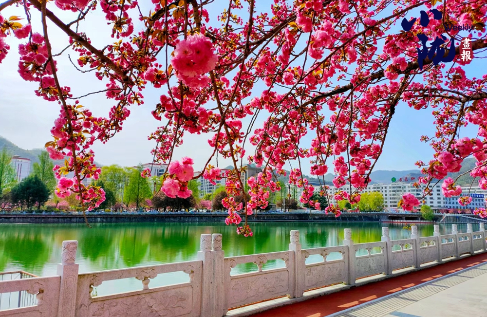 時下,隴南紅色兩當(dāng)?shù)臋鸦ㄓ瓉砹怂鼈儬€漫綻放的春季??h城濱河路的櫻花樹花枝繁碩,濃密的花朵為兩當(dāng)穿上粉色衣衫,倒影廣香河中,嬌艷粼粼、令人動容。