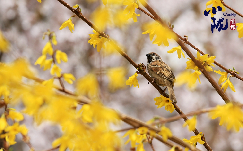 微風(fēng)輕拂,花朵搖曳生姿,樹葉隨風(fēng)起舞,榆枝上站著幾只小巧玲瓏的小精靈,它們身披黃黑相間的羽毛,尖尖的小嘴一張一合,歡快地唱著歌,仿佛在為春天的到來歡呼雀躍。