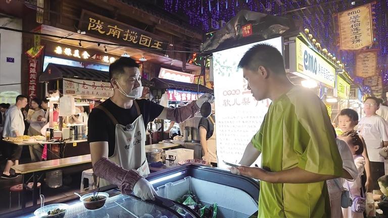 “入駐至今,平均每天能售出700根烤腸,真是來對了!”新入駐該夜市剛滿一個月的烤腸商戶老板羅兆劍高興地說,之所以選擇新光夜市,是因為它既保留了蘭州最本真的煙火氣和舌尖記憶,又滿足了現(xiàn)代消費者對品質(zhì)、體驗和多元化的需求。此外,在證照辦理、稅費優(yōu)惠、基礎(chǔ)設(shè)施配套、宣傳推廣等方面,也為商戶們創(chuàng)造了更便利、更有保障的經(jīng)營環(huán)境。
