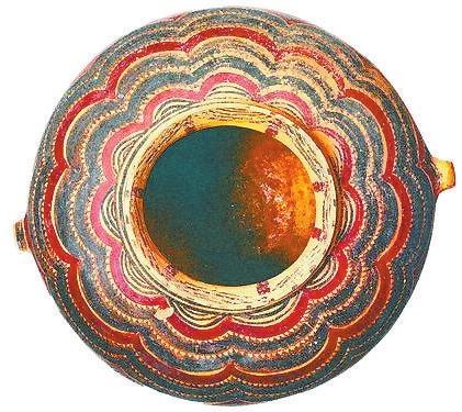 其中以馬家窯文化彩陶為代表,蘊(yùn)含著眾多神秘的社會(huì)文化信息,以線條作為造型手段、以黑色(墨色)作為主要基調(diào),奠定了中國(guó)畫發(fā)展的歷史基礎(chǔ)與以線描為特征的基本形式。馬家窯文化彩陶也是中國(guó)音樂(lè)舞蹈的開(kāi)端呈現(xiàn)。1973年,甘青地區(qū)大通縣出土的馬家窯文化彩陶舞蹈紋盆,內(nèi)壁繪舞蹈人物3組,每組5人,令人感受到遠(yuǎn)古舞蹈強(qiáng)烈的節(jié)奏感。1991年,甘肅武威市發(fā)現(xiàn)的彩陶舞蹈紋盆,內(nèi)壁繪有兩組手拉手的舞蹈人物,每組9人,舞蹈人數(shù)更多。1995年,宗日遺址再次出土一件馬家窯文化彩繪舞蹈紋盆,內(nèi)壁所繪舞蹈人物兩組,分別為11人和13人,給人一種優(yōu)雅的舞蹈意境。1986年,甘肅省永登縣出土馬家窯文化的彩陶鼓。這些珍貴的彩陶器物成為研究中國(guó)原始歌舞和音樂(lè)起源的佐證。