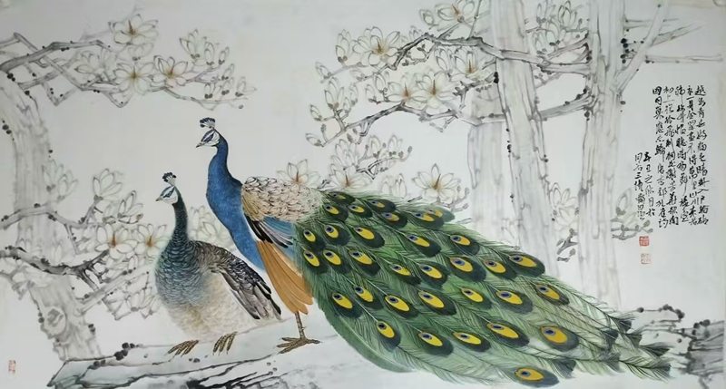 近年來,王自強的創(chuàng)作逐漸從具象走向意象。他嘗試將工筆畫的細膩與隸書的厚重結(jié)合,在《荷塘清韻》等作品中,荷葉的墨色層次與書法的線條韻律相互映襯,形成“書畫同源”的藝術(shù)境界,這種對書法藝術(shù)的探索精神不僅得到業(yè)界認可,而且得到了社會的廣泛認同。
