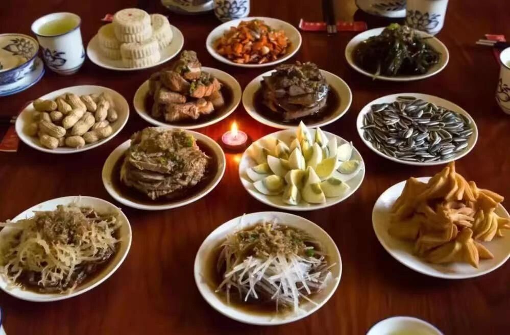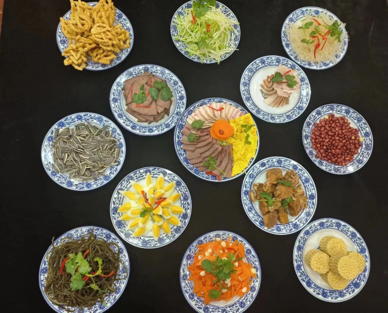——“十三花”,寓意胡太后以民為本的執(zhí)政理念;城內(nèi)四個(gè)葷菜,寓意人民四季安康、幸福美滿(mǎn);骨頭碟和懸肉碟,寓意父骨母血、尊老孝親;肝子碟和雞蛋碟,寓意肝膽相照、心心相??;四個(gè)水菜碟子水圍城,寓意順風(fēng)順?biāo)?、四方平安;城外瓜籽花生碟,寓意多子多福、多祿多壽;路食和果子,寓意衣豐食足、一路平安;最中間一個(gè)大碟全盤(pán)為中心,寓意團(tuán)結(jié)聚力、天下一心。