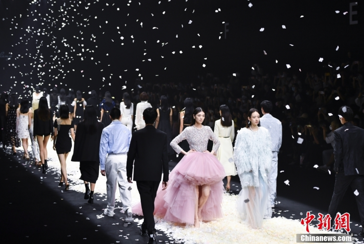 9月6日,模特在2022春夏中國國際時裝周上展示設(shè)計師黃洸騏設(shè)計的時裝。當(dāng)日,JUMPER ZHANG2022春夏“初心·盛放”主題時裝發(fā)布會在北京舉行。 中新社記者 田雨昊 攝