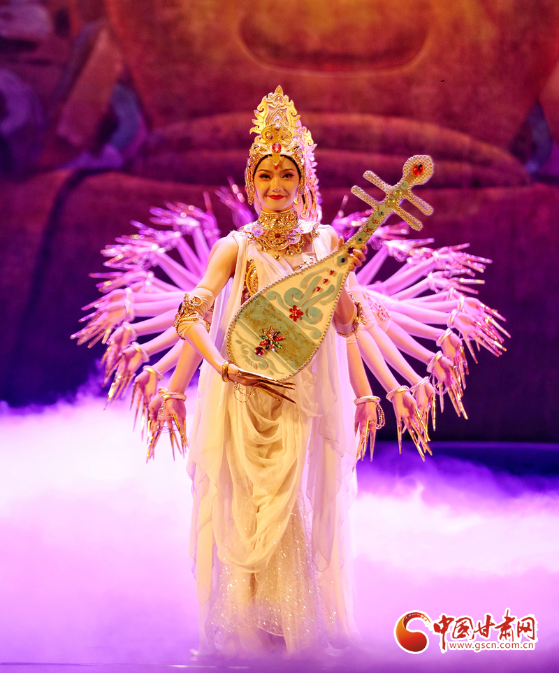 絲路漫漫、駝鈴聲聲……演出當(dāng)晚,演員們以精湛投入的表演,唱響了絲綢之路的友誼贊歌,同時(shí)也為觀眾展開(kāi)了一幅“活的敦煌壁畫(huà)”,從敦煌彩塑和壁畫(huà)中提煉出的“千手觀音”“反彈琵琶”“憑欄仙女舞”“霓裳羽衣舞”等舞蹈在舞臺(tái)上一一呈現(xiàn),深深打動(dòng)了現(xiàn)場(chǎng)觀眾,贏得無(wú)數(shù)掌聲與喝彩。