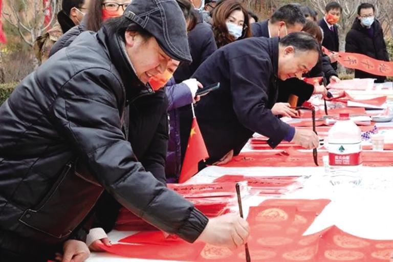 在此次活動(dòng)中,省文旅廳組織向靜寧縣捐贈(zèng)了藝術(shù)普及高質(zhì)量發(fā)展、智慧圖書館、三館一站免費(fèi)開放、戲曲進(jìn)鄉(xiāng)村、“春綠隴原”文藝展演、文化人才服務(wù)支持等項(xiàng)目經(jīng)費(fèi)共計(jì)324萬元。活動(dòng)現(xiàn)場,還向群眾贈(zèng)送了數(shù)字文化資源光盤及1000余份省內(nèi)旅游宣傳資料;組織市級(jí)非遺傳承人開展手工技藝展示,向群眾贈(zèng)送窗花及“福”字等剪紙作品;組織書畫專業(yè)人員為群眾寫春聯(lián)、送書畫,受到群眾的熱烈歡迎,為即將到來的虎年春節(jié)增添了濃濃的喜慶氛圍。