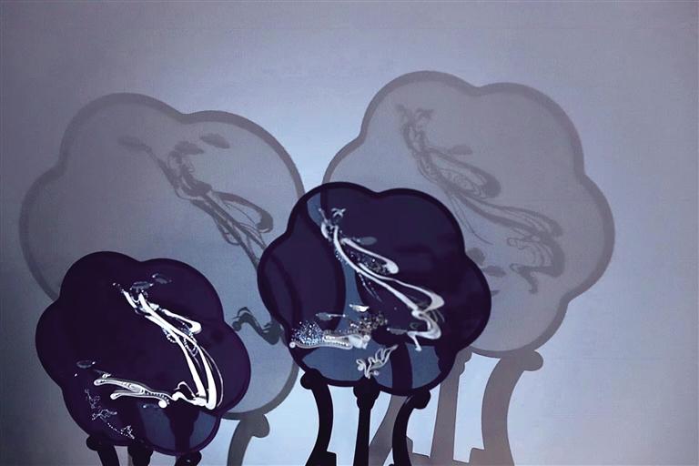 2019年劉瑤手繡的一組《敦煌手姿》扇面問世,黑色的生絹之上,用金線刺繡出敦煌手姿的婀娜曼妙。劉瑤在創(chuàng)作中,用線條貫穿每一個細節(jié),極盡傳情達意,用針與線賦予了手姿柔美與力量。也正是憑借著這一組精美絕倫的“敦煌風(fēng)”扇面,劉瑤叩開了這個項目的大門,成為了甘肅省唯一的入選者。