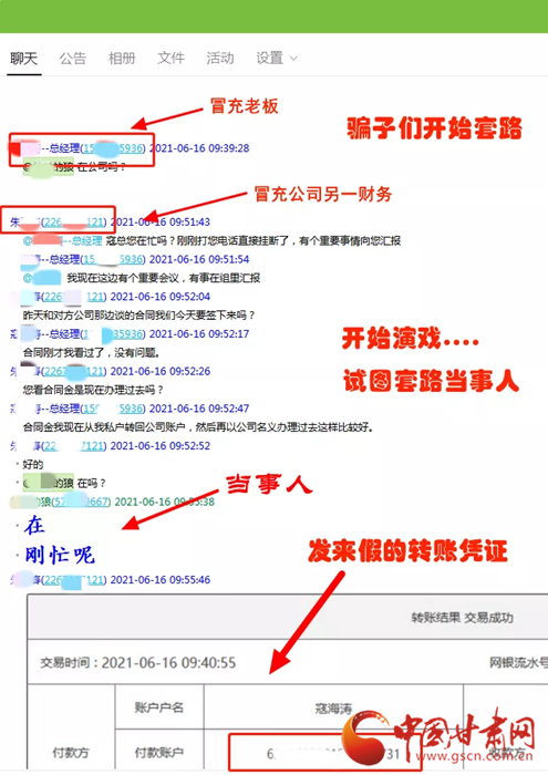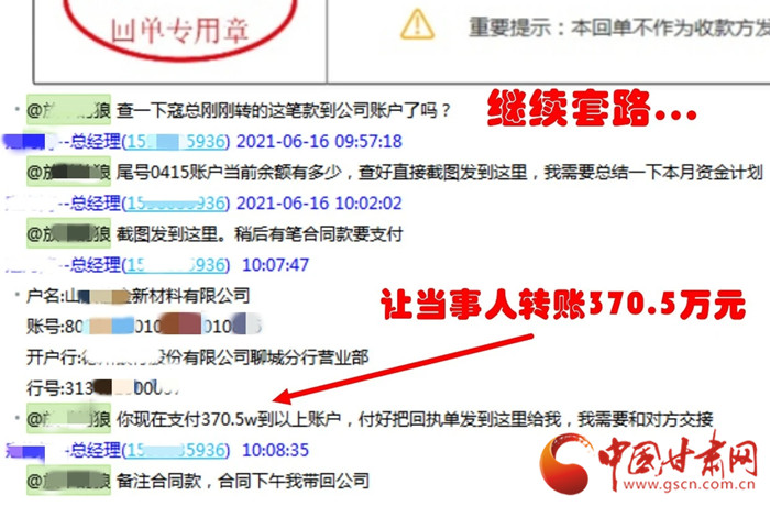 據(jù)了解,6月16日上午9時20分左右,安寧區(qū)某公司財務(wù)人員岳先生收到一封由“公司股東”發(fā)來的電子郵件,在郵件中推送了一個新建的QQ工作群,岳先生沒有多想就加入了此群。不久后,詐騙分子在此QQ群中冒充該公司法人和另外一名財務(wù)人員對岳先生下達(dá)指令,要求其向?qū)Ψ街付ㄣy行賬戶轉(zhuǎn)賬合同款370.5萬元。