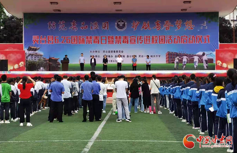 中國甘肅網(wǎng)6月25日訊(本網(wǎng)記者 李紅軍 通訊員 李青)為深入推進毒品預(yù)防宣傳教育,全面普及禁毒知識,不斷增強人民群眾特別是廣大青少年學(xué)生的禁毒防毒意識,營造全民禁毒濃厚氛圍,6月25日,平?jīng)鍪徐`臺縣禁毒委在靈臺一中操場舉辦了全民禁毒宣傳月暨禁毒宣傳進校園啟動儀式。