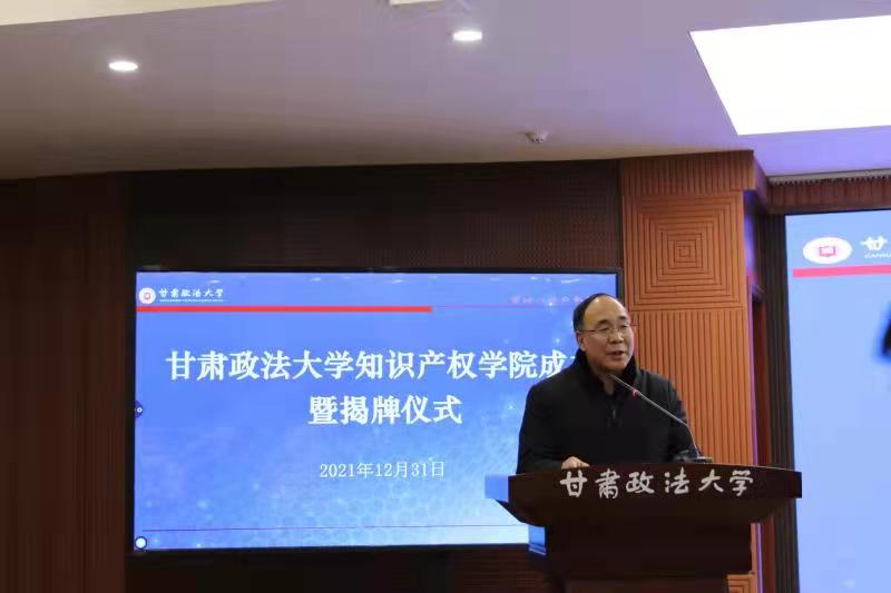 一元復(fù)始、萬(wàn)象更新;奮楫揚(yáng)帆,逐夢(mèng)前行。12月31日,甘肅政法大學(xué)知識(shí)產(chǎn)權(quán)學(xué)院成立暨揭牌儀式在明法講堂舉行,這是我省高校正式成立的第一個(gè)知識(shí)產(chǎn)權(quán)學(xué)院。甘肅省市場(chǎng)監(jiān)管局黨組成員、副局長(zhǎng)、省知識(shí)產(chǎn)權(quán)局局長(zhǎng)何文濤,甘肅省高級(jí)人民法院審委會(huì)委員、二級(jí)高級(jí)法官尹秉文,甘肅政法大學(xué)黨委書(shū)記馬建東,黨委副書(shū)記、校長(zhǎng)李玉基出席揭牌儀式,校黨委委員、副校長(zhǎng)焦盛榮主持揭牌儀式。