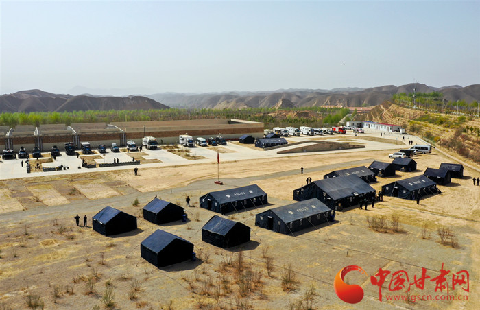16頂依山臨時搭建的警用帳篷就是一個個指揮部,甘肅省公安廳在甘肅警察職業(yè)學院舉辦的廳機關(guān)實戰(zhàn)大練兵應(yīng)急處突拉動演練中,作為指揮機關(guān)的廳屬單位29名處(局)長和14名市、州公安局局長正在接受近乎嚴苛的考驗。
