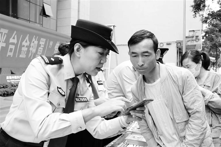 民警指導群眾安裝注冊國家反詐中心APP(蘭州市公安局城關分局供圖)