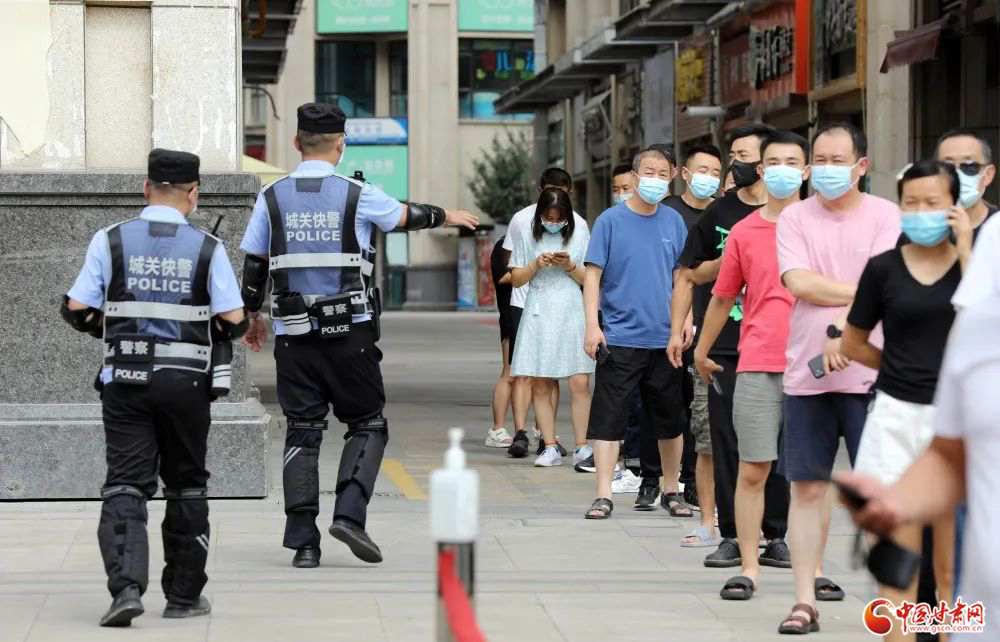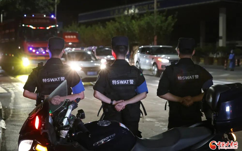 城關(guān)公安快警發(fā)揮機(jī)動(dòng)優(yōu)勢(shì),在轄區(qū)各核酸采集點(diǎn)開展秩序維護(hù)安全守護(hù)等工作。楊 釗/攝