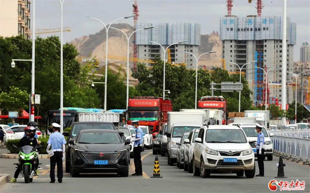蘭州公安交警嚴(yán)格按照疫主城四區(qū)情防控措施要求,對(duì)非必要入城車輛進(jìn)行查驗(yàn)勸返。楊 釗/攝