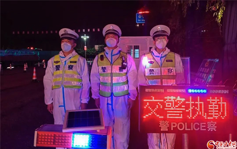 疏堵保暢,風(fēng)雨無阻。交警部門實行24小時勤務(wù)制度,在做好自身防護(hù)的同時,加強對過往車輛和人員的檢查,維護(hù)現(xiàn)場交通秩序、引導(dǎo)車輛有序通行,全力配合現(xiàn)場防疫人員做好各項疫情防控檢查,努力為全面做好疫情防控工作貢獻(xiàn)公安力量。