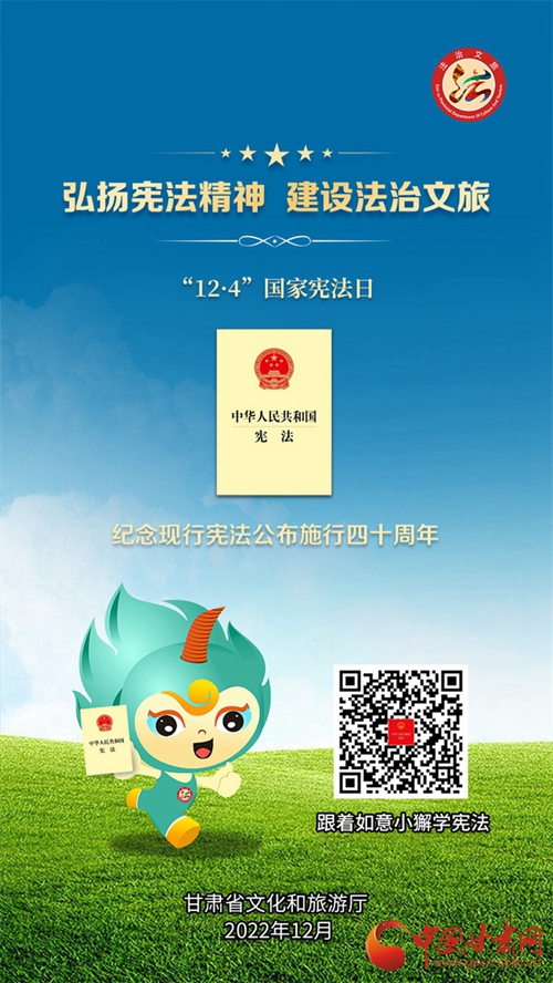 中國甘肅網(wǎng)12月7日訊 (本網(wǎng)記者 張?zhí)m琴)自12月4日國家憲法日暨憲法宣傳周啟動以來,我省各地開展了形式多樣的宣傳活動,為深入學習宣傳貫徹黨的二十大精神,不斷增強人民群眾法治意識,形成全民維護憲法的濃厚氛圍,同時加強文化和旅游的法治宣傳教育,省文旅廳近日開展了國家憲法日暨憲法宣傳周系列活動。