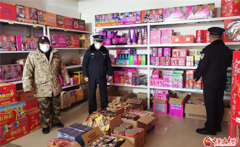 鎮(zhèn)原縣公安局城關(guān)派出所民警對(duì)轄區(qū)煙花爆竹銷售點(diǎn)、儲(chǔ)存庫(kù)區(qū)開展安全檢查
