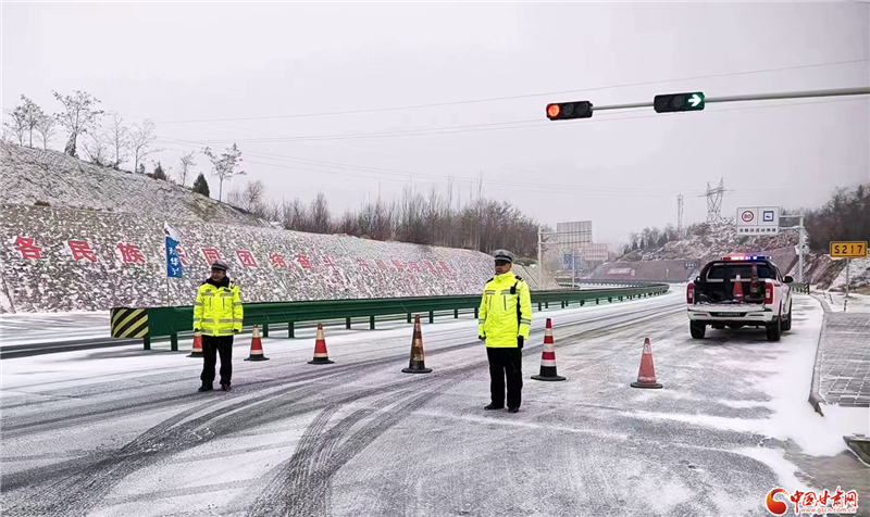 2月7日、8日,甘肅多地降雨降雪。為最大限度降低雨雪對(duì)道路交通安全的影響,全省各地公安交管部門以雪為令,立即啟動(dòng)惡劣天氣交通安保應(yīng)急預(yù)案;全員在崗,加強(qiáng)對(duì)易積雪結(jié)冰路段的巡邏管控;積極組織警力及時(shí)鏟冰除雪、救援受困人員和車輛,全力保障群眾出行安全。