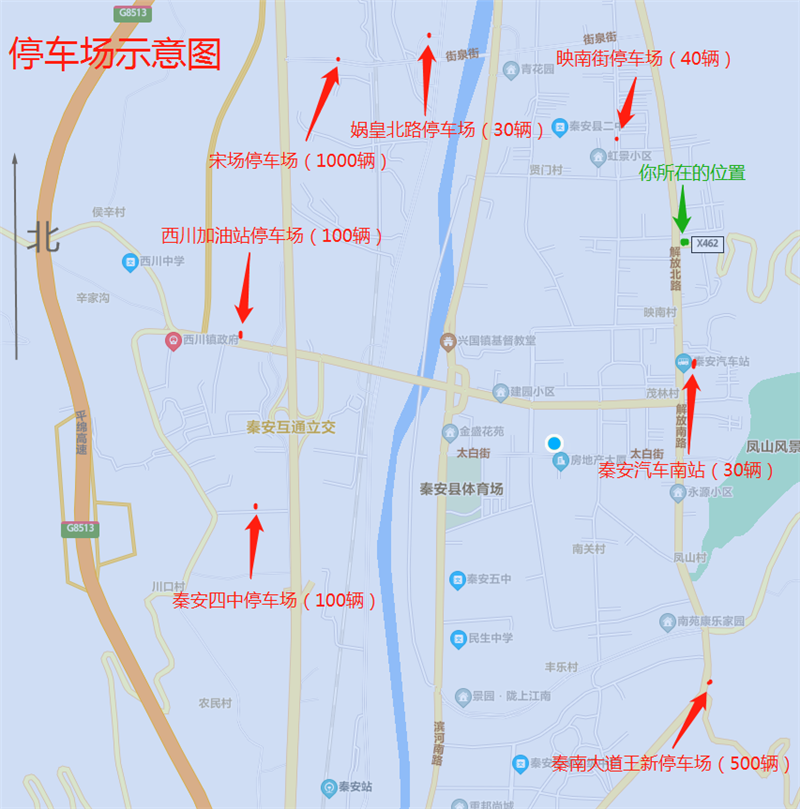 解放路(飛天文華酒店路口)——劉坪鎮(zhèn)秦洼村(果品交易市場(chǎng))