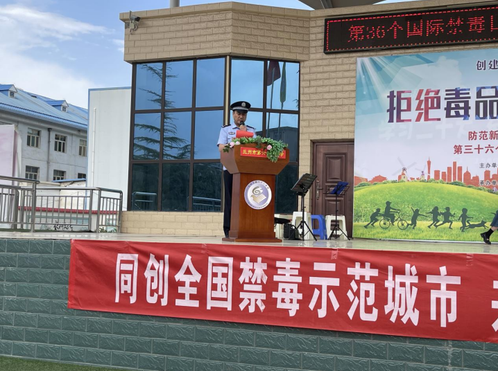 活動(dòng)以化工街派出所教導(dǎo)張華鵬向廣大師生、參與活動(dòng)人員領(lǐng)誓拉開帷幕,宣言鏗鏘有力,承諾擲地有聲,一句句誓言,道出了大家對拒絕毒品、遠(yuǎn)離毒品的決心。西柳溝街道黨工委副書記袁得琴講話中對全體到場人員作出倡議,希望大家從自身做起積極加入到全社會(huì)禁毒宣傳志愿者隊(duì)伍中,營造“禁毒斗陣、人人參與”的良好社會(huì)氛圍。