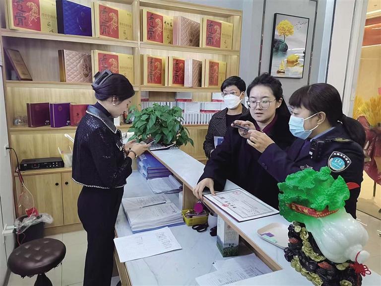 “因?yàn)槔先四挲g大了,被他們忽悠上當(dāng)受騙,現(xiàn)在我們就希望將騙取老人的近35萬元如數(shù)退還,并賠償物質(zhì)和精神損失。”連日來,張女士將此事向相關(guān)部門予以投訴。10月30日,記者與張女士一同來到春媛芙美美容美體店采訪時,城關(guān)區(qū)衛(wèi)健局綜合監(jiān)督執(zhí)法所公共場所科和醫(yī)療市場科執(zhí)法人員也趕到現(xiàn)場。