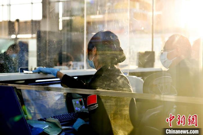 2024年11月7日,蘭州邊檢站執(zhí)勤民警驗(yàn)放國際航班旅客。王翔宇 攝
